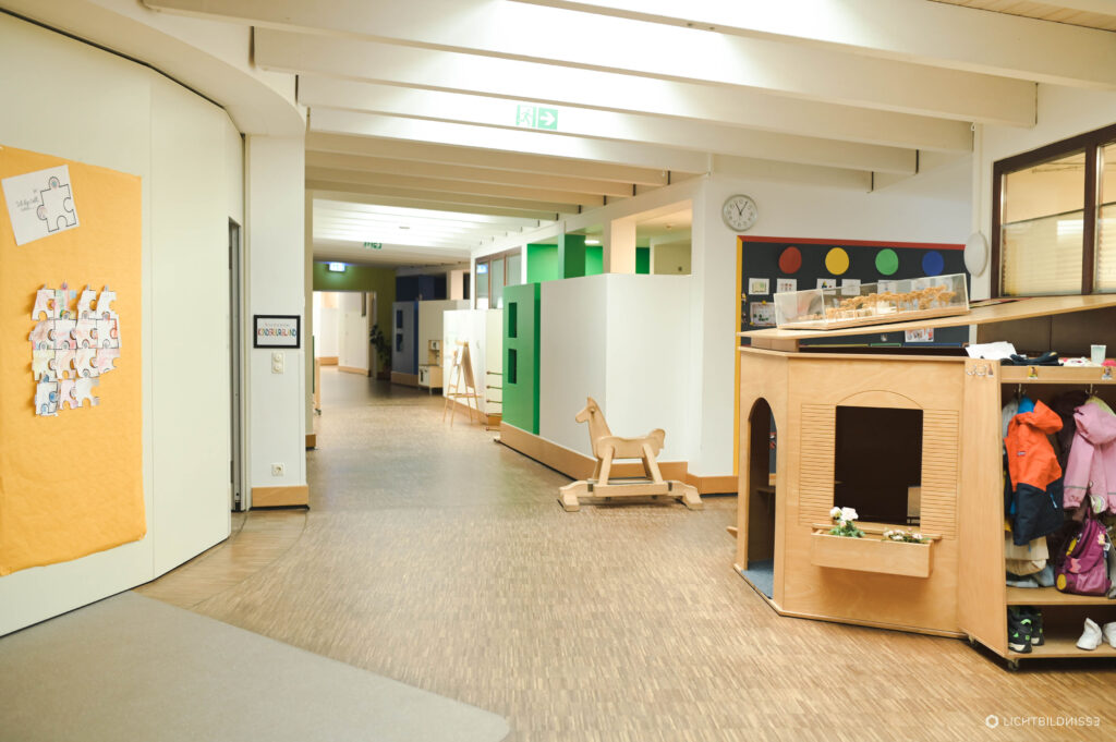 Andere Bereiche, wie zum Beispiel der Garten, die Turnhalle oder auch das Bistro werden übergreifend genutzt.